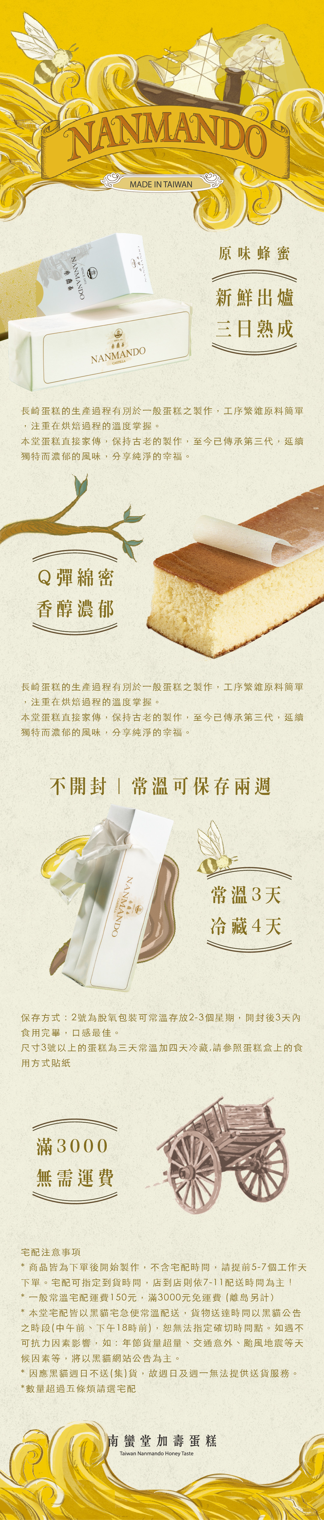 『南蠻加壽蛋糕』食用與保存說明