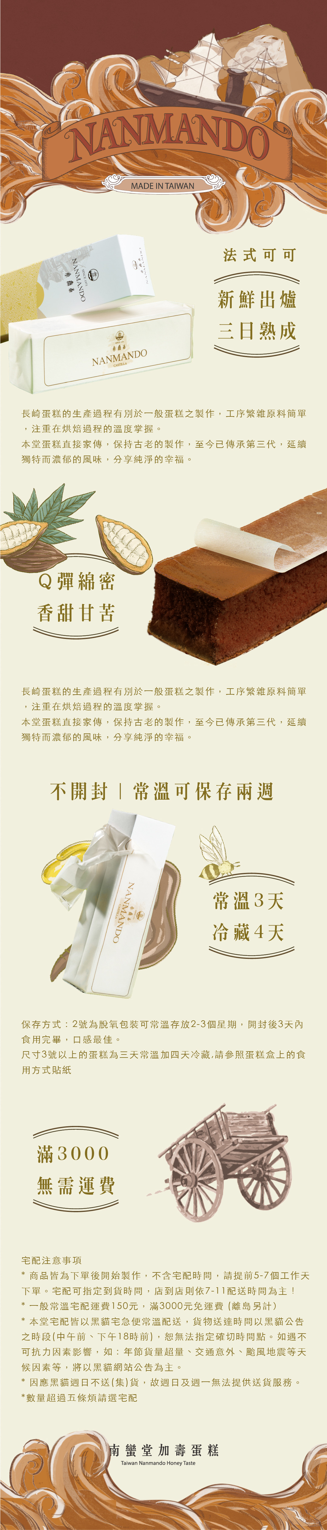 『南蠻加壽蛋糕』食用與保存說明