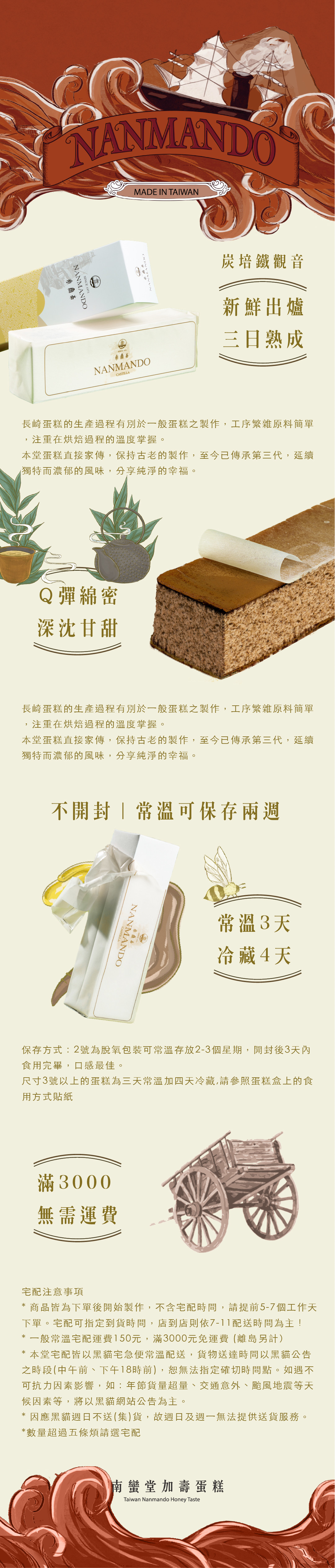 『南蠻加壽蛋糕』食用與保存說明